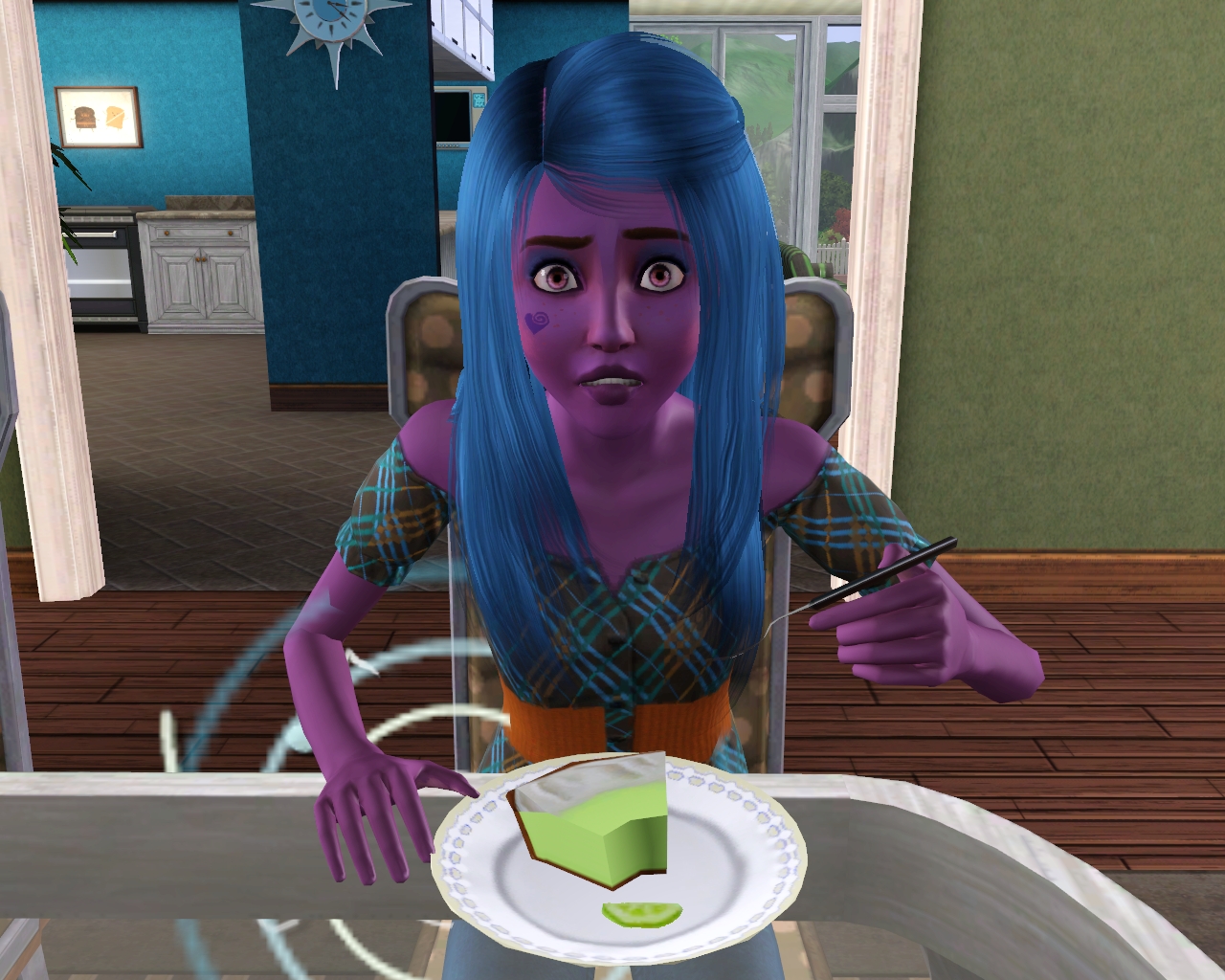 | Colette: "Aww, you're so cute." Cow Plant: "I'm not cute, I eat Sims!" |