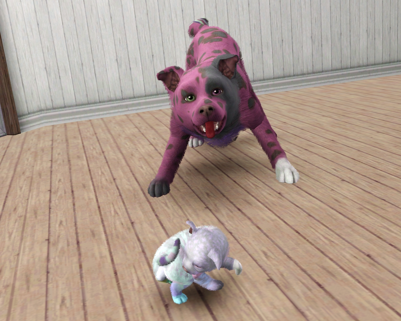 | Evangeline: "Let the new doggy have my imaginary friend and shred it to pieces!" |